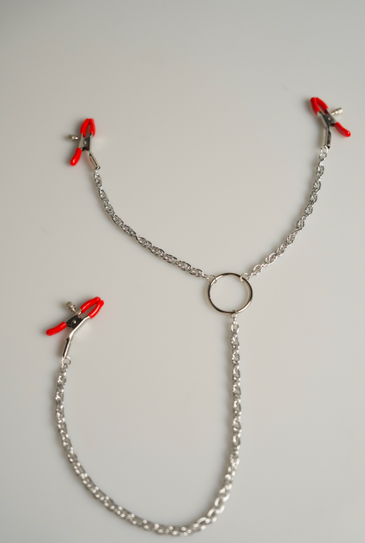 Adjustable Nipple Clamps with Chain & Bells: BDSM Nipple Jewelry, Fetish Play Accessory