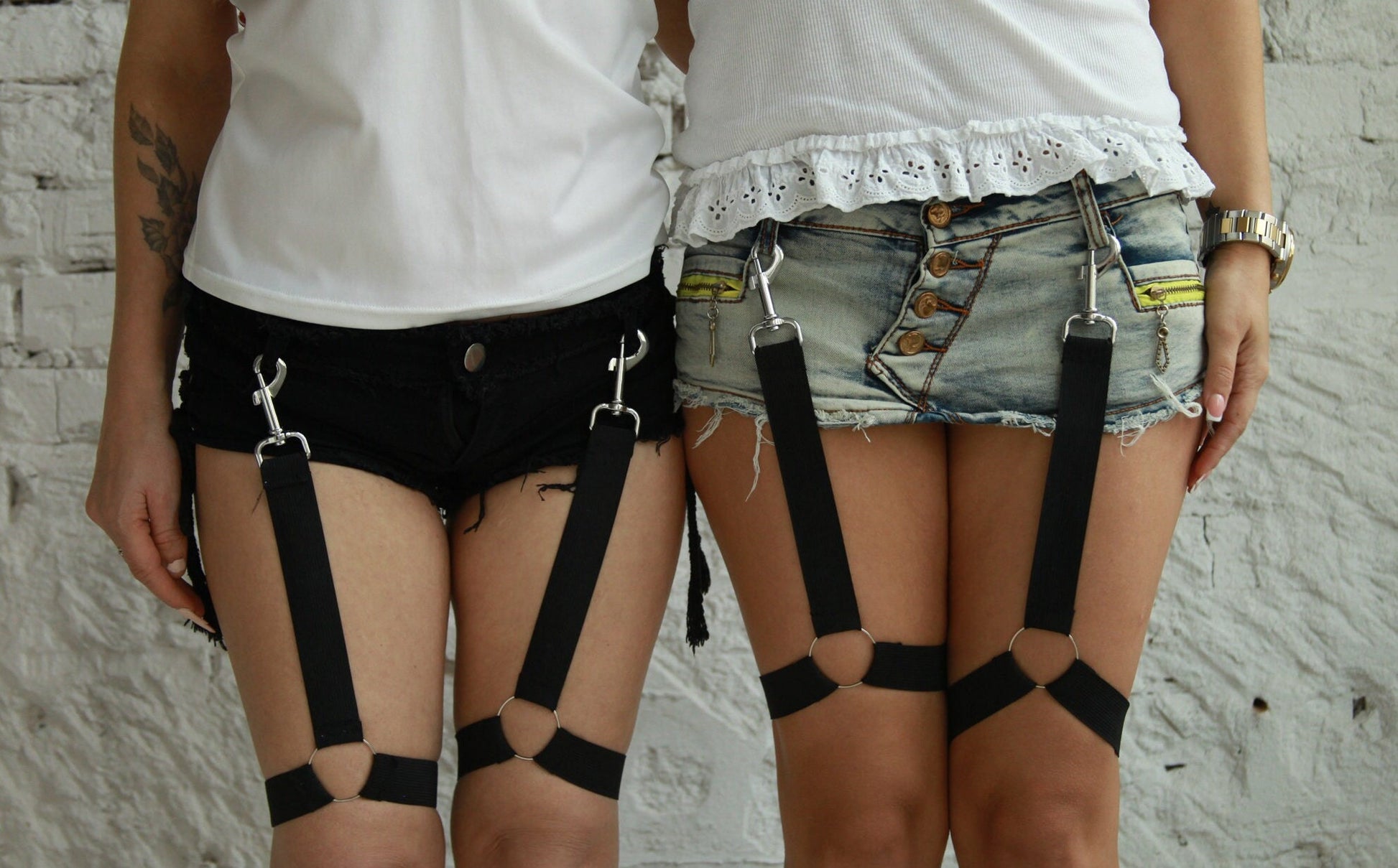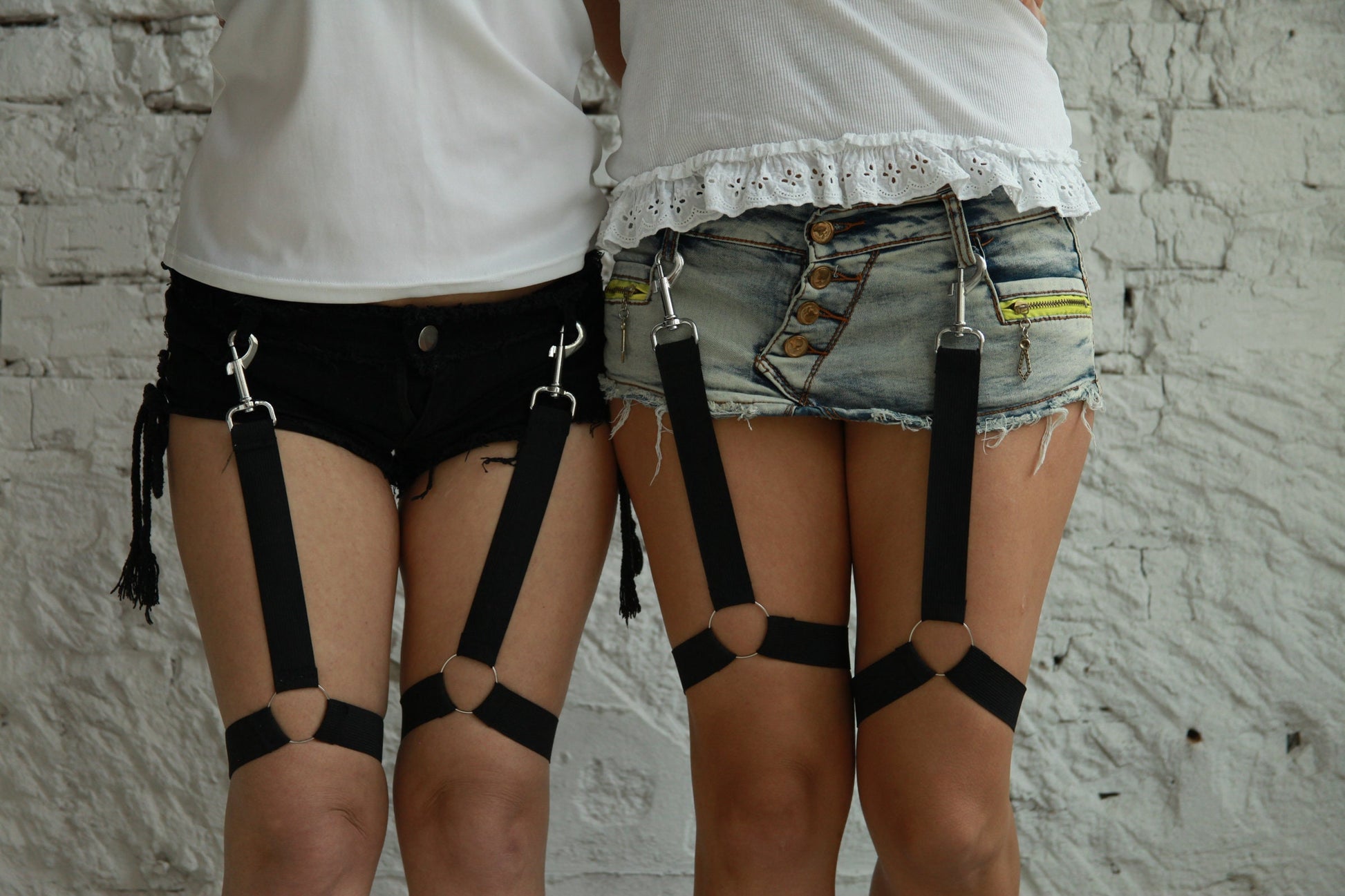 This is must have: harness (garters) with carabiners.